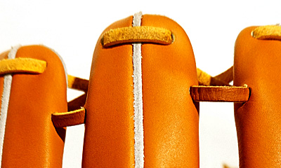 薬指部分に革製のリングを取り付けます。グラブが手にフィットするようになり捕球が安定します。