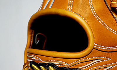 深めのポケットの外野手用。小指二本入れ設計でグローブのスムーズな開閉をサポートします。